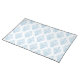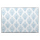 Placemat shown with a blue and white damask print.