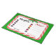 A perfect funny place setting for your home, office or holiday party! Set your table with a cute Christmas place mat to help Santa Claus keep track with a candy cane frame, bright red and green holly and berries. The Nice get presents! They sit on the chairs with cushions. The Naughty get coal and can sit on the other side of the table.