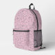 Placers of white-pink pearls on pink velvet printed backpack