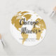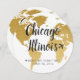 Gold world map on a round card that looks like a globe table name cards - personalize with your favorite travel destinations for each table! Great conversation starter at an elegant destination wedding or travel theme reception, baby shower, bridal shower or mitzvah.