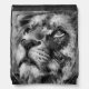 Placid Lion Face Silver Drawstring Bag