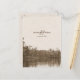 This tranquil mountain lake scene save-the-date postcard, created from one of my own personal kayaking photographs, has a vintage photography feel with a brown-tinted black & white image and features an undisturbed lakeside scene with lightly rippled but calm water reflecting distant trees and rock structures, perfect for a mountain, lakeside, or riverside wedding celebration - customize your details on a cream textured-paper-look background - by katz_d_zynes
