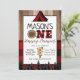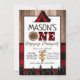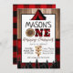 Plaid black and Red One Happy Camper Boy Camping Invitation