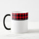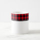 This ceramic coffee mug is shown with a cute black and red buffalo plaid print.