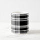 This ceramic coffee mug is shown in a black and white plaid print.