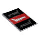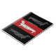 Stylish and quirky personalized notebook for dog lovers with elongated, plaid pattern sausage dogs on bold red and black stripes.