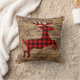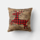 Plaid Deer On Faux Brown Tree Bark Texture Pattern Throw Pillow