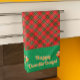 Plaid Doodle Yellow Dog Personalized Christmas Kitchen Towel