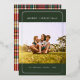 Plaid Family Photo Geometric Christmas Silver Foil Holiday Card