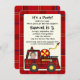Plaid Fire Engine Birthday with Photo Invitation