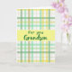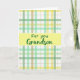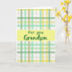 This design shows a neat plaid background on a crisp white base, with mint green and sunny yellow bands crossing in a tidy grid and thin beige lines adding gentle contrast. The soft spring palette sets a friendly, affectionate tone, like a note meant for someone you’re close to 🌷. A wide, pale-yellow stripe runs straight across the middle, creating a calm stage for the message. Centered on that stripe, the words “For you” sit above “Grandson” in deep green lettering, arranged to feel like a close, direct address. The lettering has a loose, hand-drawn look that suggests a caring sender taking a moment to write something just for him 🐰. Slight changes in the thickness of the plaid lines give the surface a subtle texture, keeping the pattern from feeling flat. The mint and yellow lines remain evenly spaced around the center band, framing the green text with a balanced border.