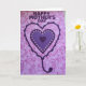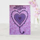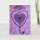 This card features three layered hearts centered on a pink-and-purple background, with a tender, romantic mood suggested by the way the shapes nest closely together like a gentle embrace ❤️. The outer heart is a deep purple border with soft, wavy edges that drips downward into a decorative stem and curled flourish, like a dangling ornament. Inside it sits a medium purple heart edged with tiny circular dots that catch the light like little jewels, adding a sweet, friendship-like sparkle. At the center, a smaller, darker purple heart anchors the design and keeps the focus tight and intimate. Near the top, dark purple lettering announces the occasion, standing out clearly against the lighter backdrop. The background is blush pink with a faint plaid pattern and scattered splashes of fuchsia and deeper purple, giving it an artsy, textured look 🌼. The hearts sit squarely in the middle, while the paint-like splatters drift around them across the plaid field.