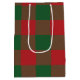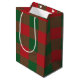 Red and Green medium plaid Christmas gift bag with red and green stirpes.