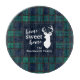 Cute home sweet home Christmas cutting board you can easily customize by clicking the "Personalize" button, Featuring deer silhouette and clan Blackwatch tartan in green and blue checkered design.
