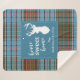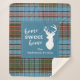 Cute home sweet home Christmas blanket you can easily customize by clicking the "Personalize" button, Featuring deer silhouette and clan Anderson tartan in teal, light blue check.
