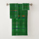 plaid in greens on green, red, blue, gold &silver bath towel set