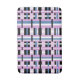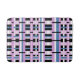 This bath mat features a modern twist on plaid in shades of orchid, slate blue and black and white.