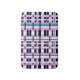 This bath mat features a modern twist on plaid in shades of orchid, slate blue and black and white.