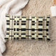 This pillow features a modern twist on plaid in taupe, tan, black, and white.