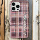 Buffalo plaid,tartan,checkered design theme in elegant color scheme.Trendy red whine nuances,burgundy,bordeaux,peach,pink,blush,ivory,beige,cream,off white,geometric pattern with stripes,lines crossed Personalization,customization possibilities,with a name for example or you can even delete the text.Modern farmhouse,rustic,country,cabin influences for an iPhone case easy to match with your outfit or make a beautiful fashionable stylish creative thoughtful gift.The colors are appropriate also for festive winter time holidays.