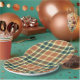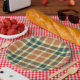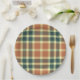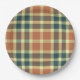 Lovely plaid paper plates with fall colors. The colors used to make the plaid design are Orange, Green, and yellow.