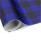 A wrapping paper designed with a black and blue plaid pattern. Customize the blue background among other options.
