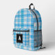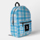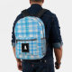 Plaid Pattern Gingham Check Light Blue Monogram Printed Backpack