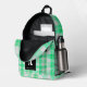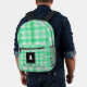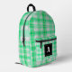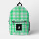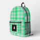 Plaid Pattern Gingham Check Light Green Monogram Printed Backpack