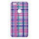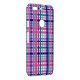 Do you like fun phone cases? This phone case has a plaid pattern featuring purple, teal, pink and navy blue lines on a white background.