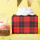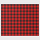 A wrapping paper designed with a red and black plaid pattern. Customize the red background among other options.