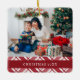 This festive Christmas ornament features a watercolor red and white buffalo check plaid pattern with text and 2 photos for personalizing. Find matching items in the Christmas Watercolor Buffalo Plaid Holiday Cards.
