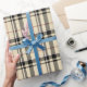 An assortment of pink, black and tan plaids on roll wrapping paper
