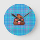 plaid poop emoji round clock