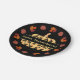 This fall paper plate has a design featuring a plaid pumpkin surrounded by fall leaves. The text on the paper plate can be customized with your own text, or it can be left as is.