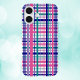 Do you like fun phone cases? This phone case features a plaid pattern done in purple, pink, teal and navy blue.