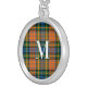 Plaid Red Green Check Rustic Monogram Tartan Silver Plated Necklace