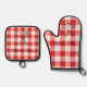 Plaid Red & White Custom Name Gift Oven Mitt & Pot Holder Set