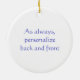 Lightweight, smooth, pure white ornament with nice sheen. Perfect size to be seen from across the room ... and to attract closer inspection! Price was great for ordering enough for the whole family! Clear, bold black design just as requested. Matches the order exactly. Just so nice!