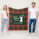Cute home sweet home Christmas blanket you can easily customize by clicking the "Personalize" button, Featuring deer silhouette and clan MacKinnon tartan in red, green check.