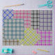 Colorful plaid tissue paper with blue, pink, purple, green black and white plaid. For gift wrapping, decoupage, or linings.
