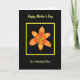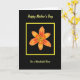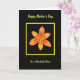 This card features a single star-shaped flower centered inside a bright yellow rectangular frame on a deep black background, creating a dramatic, romantic contrast ❤️. The bloom opens into six broad petals that shift from fiery orange at the tips to warm golden tones near the center, like a gentle glow meant for someone close. Small dark red speckles dust the inner petals, adding texture that feels intimate, as if you’re leaning in for a closer look. The empty black space around the frame keeps the focus on the flower, giving it a quiet, gallery-like setting. At the top, a short greeting appears in a flowing handwritten-style font in the same yellow as the frame, standing out clearly against the black. A second line of text sits below the frame in matching yellow, balanced and easy to read, like a soft note between friends 🌼. The yellow border looks crisp and even, with the flower placed neatly in the middle and plenty of black space surrounding it.