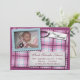 Birth Announcements featuring a plaid design with purple and blue lines. A multi-layered fabric look including a "New Arrival" tag and a picture of the baby. Customize with the baby's name, birth date & time, weight & length, and the name(s) of the parent(s).