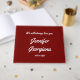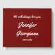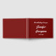 This respectable funeral or memorial guestbook features the message "We will always love you,", and the personalized name and birth/death dates of the individual who has passed on. It could be used to record fond memories of somebody who has recently passed on. The text is white, and the background is dark red.