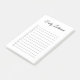 Plain and simple to do list personalized note pad with name. Casual script name header with 12 task lines with check boxes. Black text on a white background.