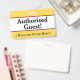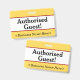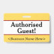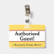 This plain badge design features the message "Authorised Guest!", and a customizable company name or other custom message. A badge like this could be used to indicate that a visitor or guest at a workplace is allowed to be there. [~Z0000307]