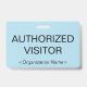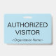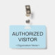 This basic badge design features the message "AUTHORIZED VISITOR", and a customizable company name or other custom message. A badge like this could be used to identify that somebody at a workplace or business is an authorized guest/visitor. [~Z0000307]