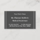 This basic and plain business card design features a first and last name, a business or clinic name, a professional title, and contact info that are customizable. Business cards such as these might be used by a professional such as a family doctor, a dentist, or a physician.