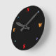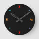 A very plain black clock with stenciled coloured numbers.Modern and trendy this minimalist clock will brighten your mornings. Available in round and square forms.