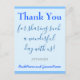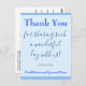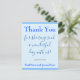 This plain and customizable wedding thank-you postcard design features the message "Thank You for sharing such a wonderful day with us!" on the front, along with a customizable message on the back. It features different shades of the color blue. It could be used to offer gratitude to somebody who was a guest at a wedding ceremony.