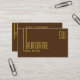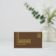 Make a lasting impression with this classic and simple business card design with modern yellow font & fine decor stripes and monogram on a plain dark brown background.
